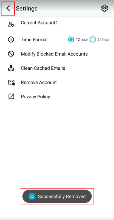 Press the back arrow in the top left corner of the Settings menu to be taken back to your inbox and repeat this process for any additional accounts you wish to remove: